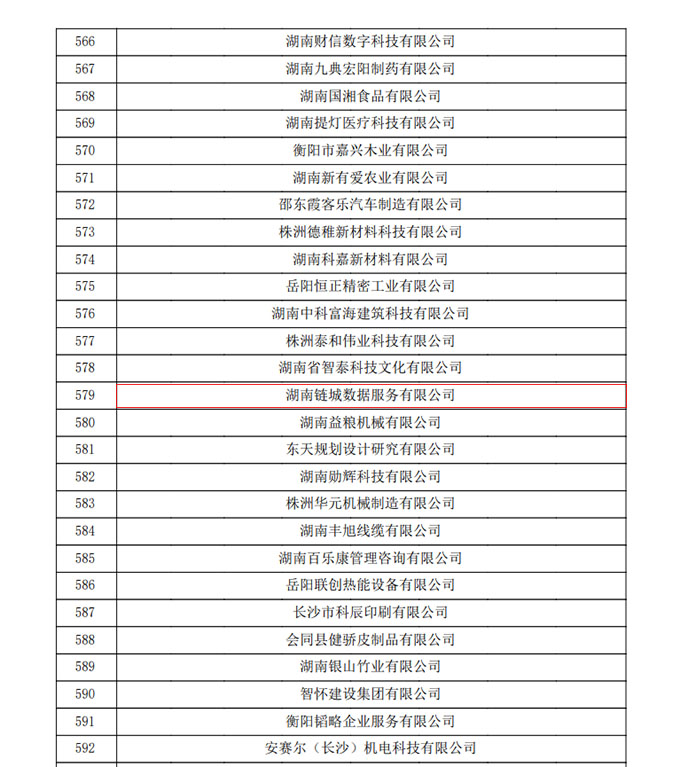2023年12月,湖南省認(rèn)定機(jī)構(gòu)2023年認(rèn)定報(bào)備的第二批高新技術(shù)企業(yè)備案名單公示,湖南鏈城數(shù)據(jù)服務(wù)有限公司赫然在列,公司申報(bào)國家級(jí)高新技術(shù)企業(yè)獲批通過。