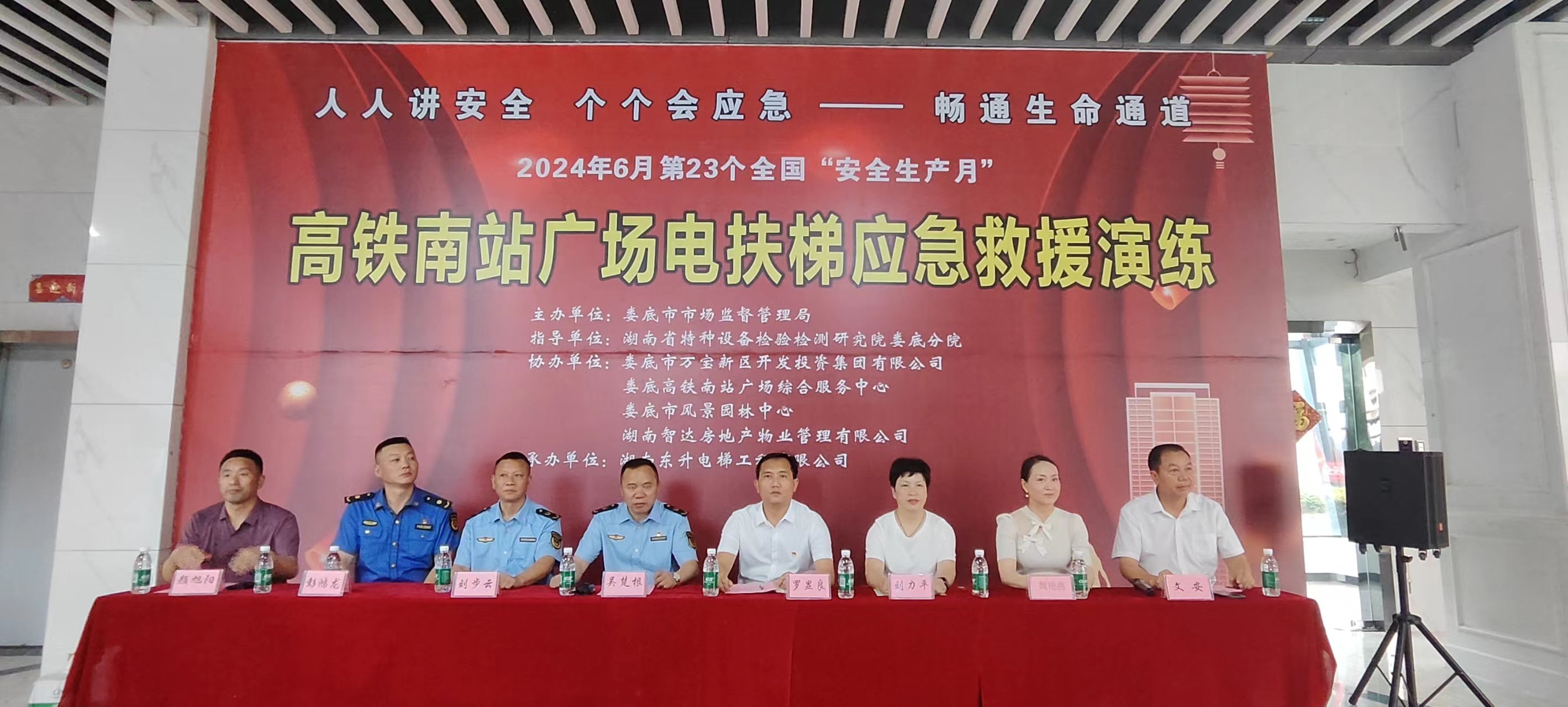 為增強安全生產(chǎn)意識,聚焦應(yīng)對特種設(shè)備事故的快速反應(yīng)和高效處置能力,6月17日上午10點,我市在高鐵南站廣場舉行電扶梯應(yīng)急救援演練。本次活動由婁底市市場監(jiān)督管理局主辦,婁底市萬寶新區(qū)開發(fā)投資集團有限公司、婁底市高鐵南站廣場綜合服務(wù)中心、婁底市風景園林中心、湖南智達房地產(chǎn)物業(yè)管理有限公司協(xié)辦,湖南東升電梯工程有限公司承辦,湖南省特種設(shè)備檢驗檢測院婁底分院進行現(xiàn)場指導。